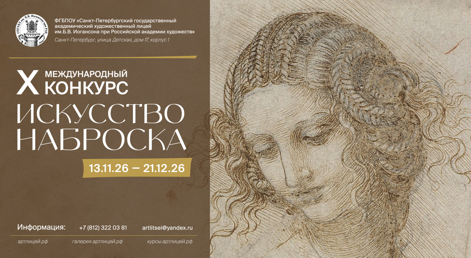 Организатором и учредителем Конкурса «Искусство наброска» является ФГБПОУ «Санкт-Петербургский государственный академический художественный лицей им.Б.В.Иогансона при Российской академии художеств»